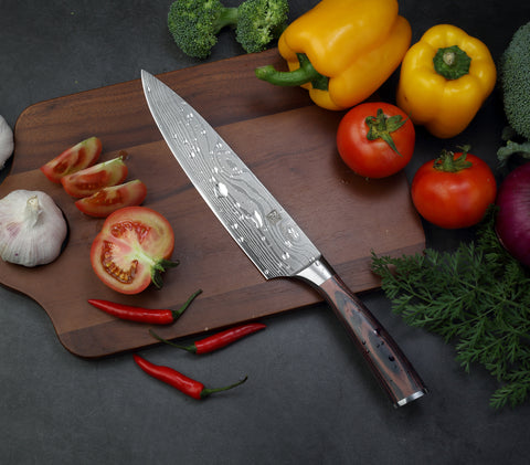 This knife can cut fruits, vegetables, and meat with ease, and it does all the cutting with minimal effort. This knife is light in weight, and the sharp blade gives it the perfect balance. The knife will also reduce stress on your wrists, and you won’t have to struggle while cutting. Professionals have applauded the knife for its sharpness and stylish blade pattern.